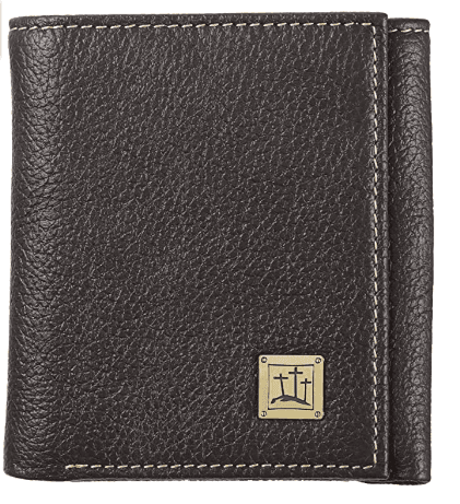 This wallet has a unique design and slim design. It can fit just right into a front pocket. Additionally, it has a metal medallion on the exterior. This medallion has three stamped crosses. So, this wallet makes a great gift for your parents, husband, or son, especially if you are a Christian.