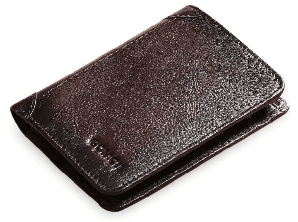 GOIACII sends a gift box along with this wallet in every package. You can use it as a birthday or holiday present for your husband or son. Additionally, you get to choose between different colors. You can buy this wallet in brown, coffee, and a fresh navy blue color.