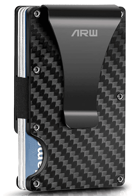 The next contender on our today’s list is ARW Metal Money Clip Wallet. Made from high-grade carbon fiber, this metal wallet is quite slim, sleek, and sturdy. Moreover, its simple exterior design gives it a fashionable look.